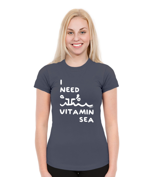 Dámská trička SKRATDA NEW pro ženy s potiskem 1132 I NEED VITAMIN SEA v barvě GRAY INK