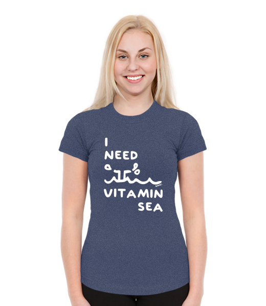 Dámská trička SKRATDA NEW pro ženy s potiskem 1132 I NEED VITAMIN SEA v barvě JEANS