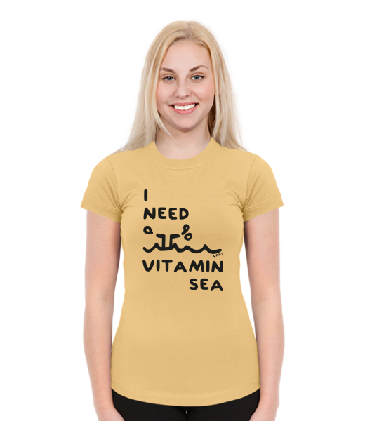 Dámská trička SKRATDA NEW pro ženy s potiskem 1132 I NEED VITAMIN SEA v barvě MUSTARD