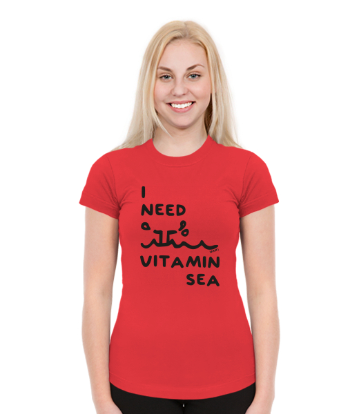 Dámská trička SKRATDA NEW pro ženy s potiskem 1132 I NEED VITAMIN SEA v barvě RED