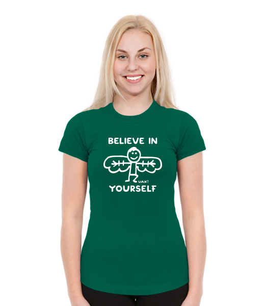 Dámská trička SKRATDA NEW pro ženy s potiskem 1228 BELIEVE IN YOURSELF v barvě UNIVERSITY GREEN