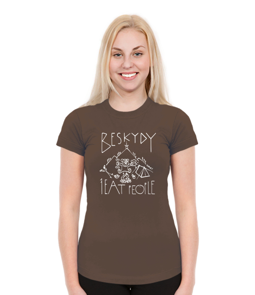Dámská trička SKRATDA NEW pro ženy s potiskem 1241 I EAT PEOPLE BESKYDY v barvě CHESTNUT