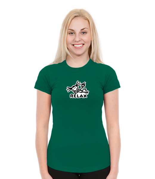 Dámská trička SKRATDA NEW pro ženy s potiskem 1256 RELAX GIRL v barvě UNIVERSITY GREEN