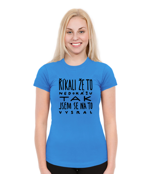 Dámská trička SKRATDA NEW pro ženy s potiskem 1366 ŘÍKALI ŽE TO NEDOKÁŽU TAK JSEM SE NA TO VYSRAL v barvě CAPRI BLUE