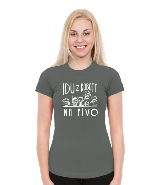 Dámská trička SKRATDA NEW pro ženy s potiskem 1369 IDU Z ROBOTY NA PIVO v barvě DARK GRAY