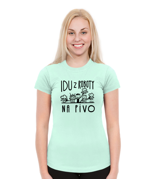 Dámská trička SKRATDA NEW pro ženy s potiskem 1369 IDU Z ROBOTY NA PIVO v barvě MINT