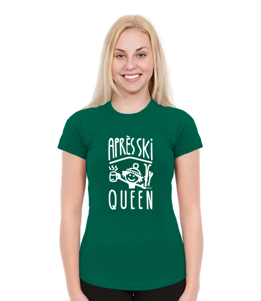 Dámská trička SKRATDA NEW pro ženy s potiskem 1371 APRÉS SKI QUEEN v barvě UNIVERSITY GREEN