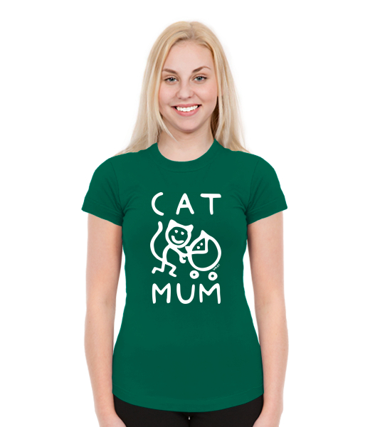 Dámská trička SKRATDA NEW pro ženy s potiskem 1375 CAT MUM v barvě UNIVERSITY GREEN