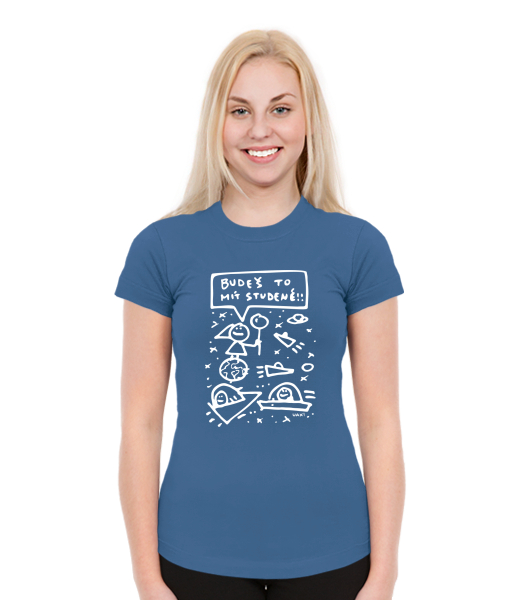 Dámská trička SKRATDA NEW pro ženy s potiskem 1386 BUDEŠ TO MÍT STUDENÉ v barvě MOONLIGHT BLUE