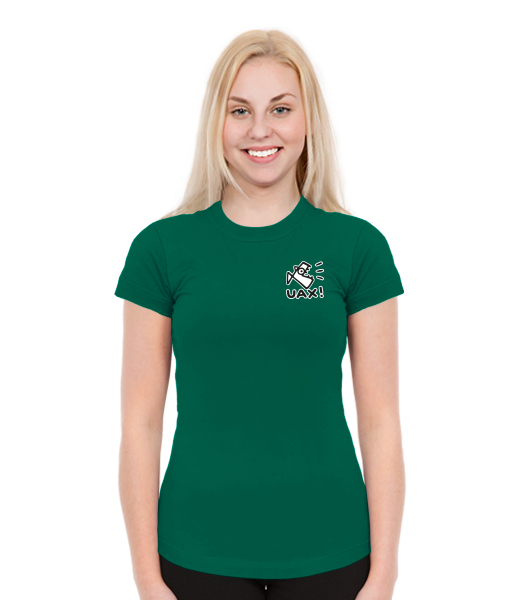 Dámská trička SKRATDA NEW pro ženy s potiskem 412 LOGO UAX! SMALL v barvě UNIVERSITY GREEN