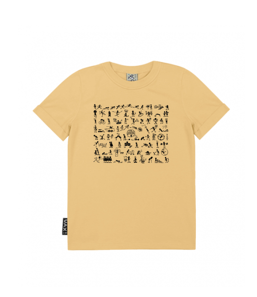 • Potisky nanášíme ve 2-3 vrstvách a pevně je ručně vtláčíme pomocí sítotisku do vláken textilu tak, aby tričko sneslo i hrubší zacházení.