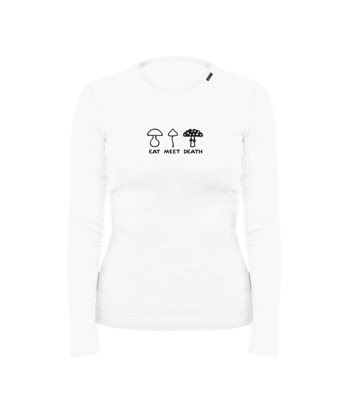 Trička s potiskem SKRATDA+ - dámské tričko s výběrem potisků pro ženy s potiskem 1177 EAT MEET DEATH v barvě WHITE