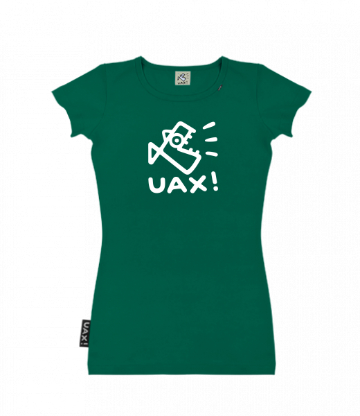 Dámské trička s potiskem SKRATDA UAX! - dámské tričko s výběrem potisku pro ženy s potiskem 1364 LOGO UAX! 2023 v barvě UNIVERSITY GREEN