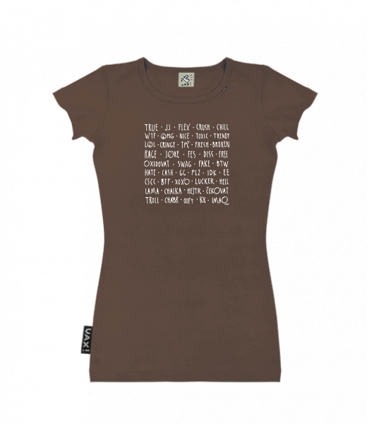 Dámské trička s potiskem SKRATDA UAX! - dámské tričko s výběrem potisku pro ženy s potiskem 1372 DĚTSKÝ SLANG v barvě CHESTNUT
