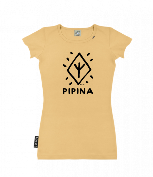 Dámské trička s potiskem SKRATDA UAX! - dámské tričko s výběrem potisku pro ženy s potiskem 1373 PIPINA v barvě MUSTARD