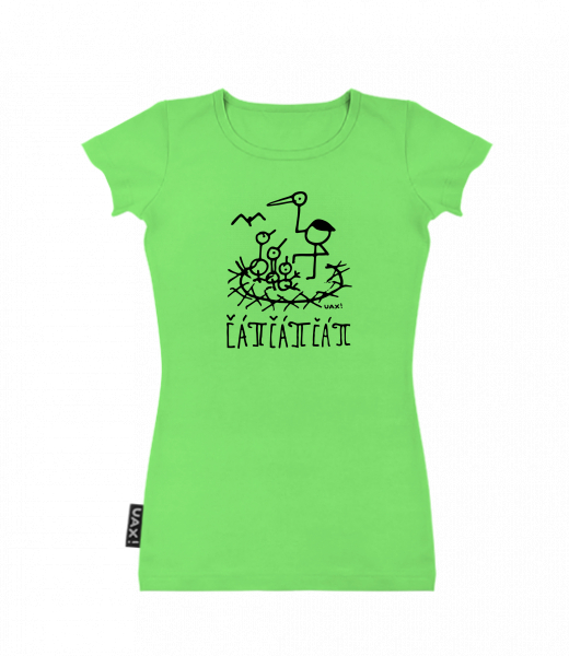 Dámské trička s potiskem SKRATDA UAX! - dámské tričko s výběrem potisku pro ženy s potiskem 1379 ČÁPÍČÁPÍČÁPÍ v barvě APPLE