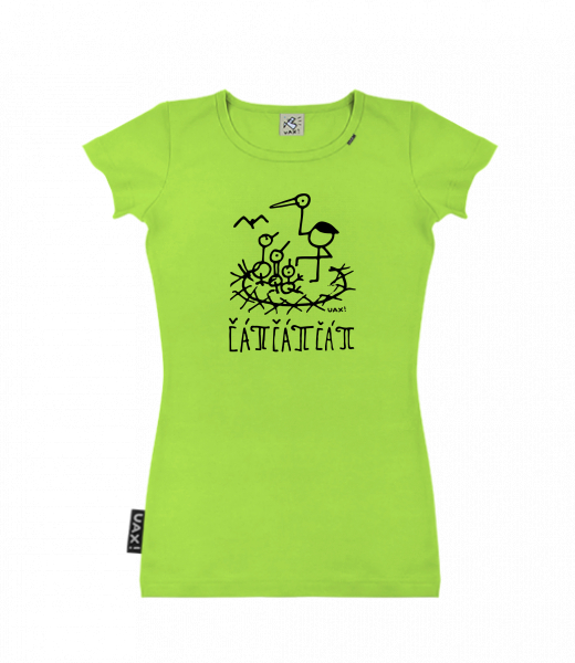 Dámské trička s potiskem SKRATDA UAX! - dámské tričko s výběrem potisku pro ženy s potiskem 1379 ČÁPÍČÁPÍČÁPÍ v barvě PARROT GREEN