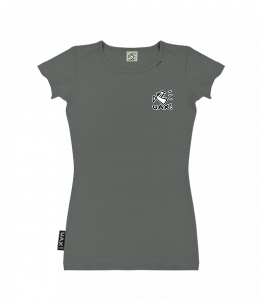 Dámské trička s potiskem SKRATDA UAX! - dámské tričko s výběrem potisku pro ženy s potiskem 412 LOGO UAX! SMALL v barvě DARK GRAY