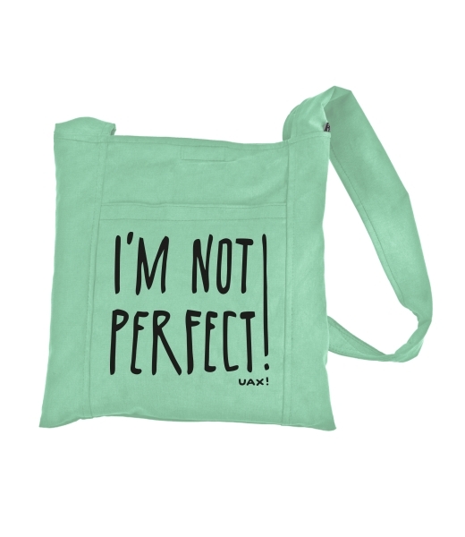 HAMBAG bag with printing with design 1230 IM NOT PERFECT in color PISTACHIO GREEN