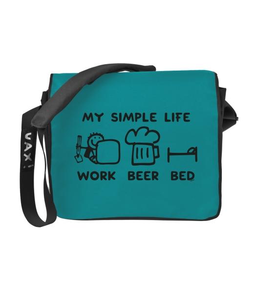 Bag for notebook - LAPTOPA 14-15 with design 1211 MY SIMPLE LIFE WORK BEER BED in color TURQUOISE