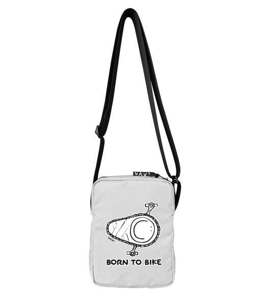 TASKAPA shoulder bag with design 1074 BORN TO BIKE in color WHITE