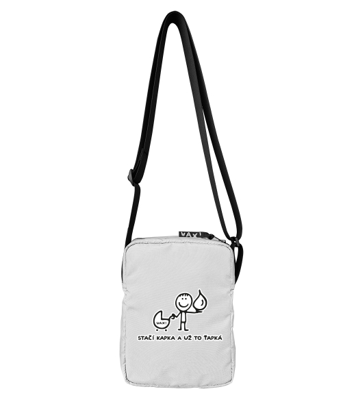 TASKAPA shoulder bag with design 1081 STAČÍ KAPKA A UŽ TO ŤAPKÁ in color WHITE