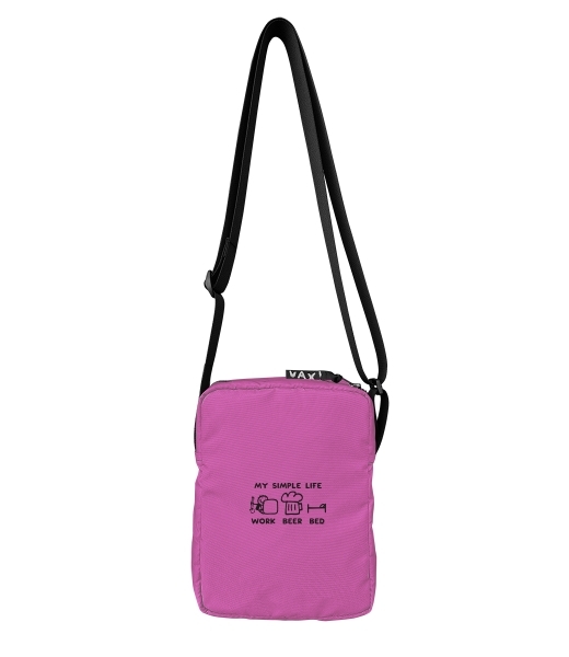 TASKAPA shoulder bag with design 1211 MY SIMPLE LIFE WORK BEER BED in color INDIAN LILA