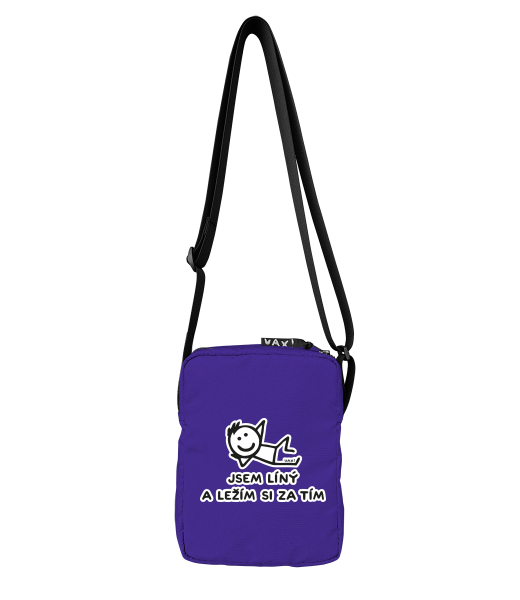 TASKAPA shoulder bag with design 1217 JSEM LÍNÝ A LEŽÍM SI ZA TÍM in color VIOLET