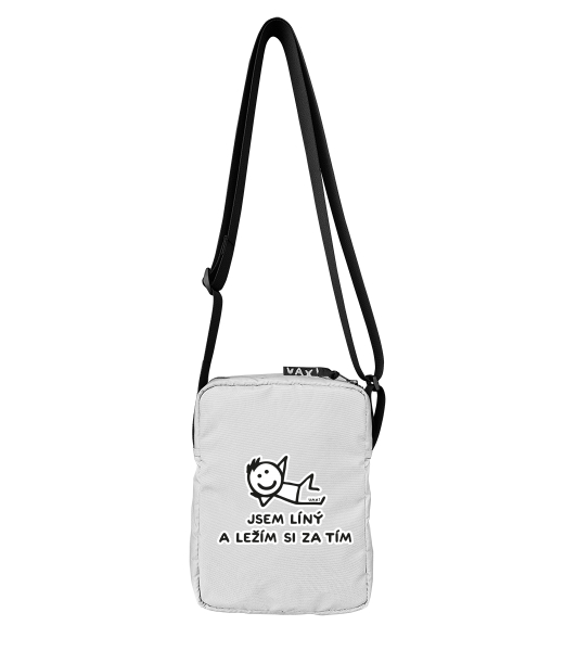 TASKAPA shoulder bag with design 1217 JSEM LÍNÝ A LEŽÍM SI ZA TÍM in color WHITE