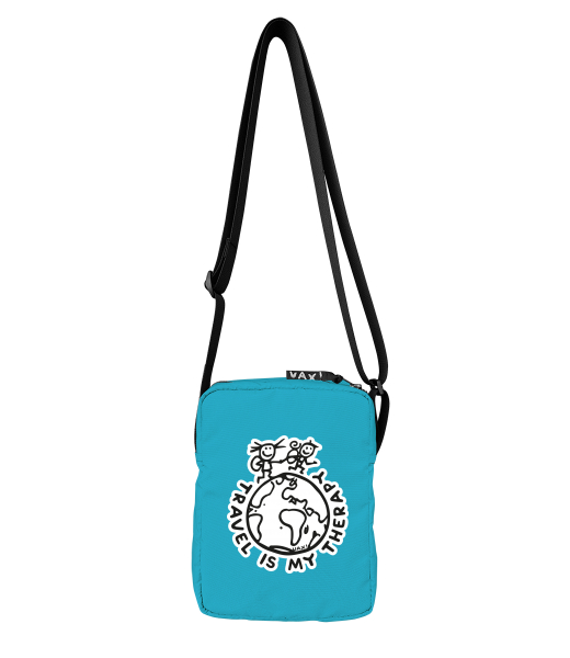 TASKAPA shoulder bag with design 1240 TRAVEL IS MY THERAPY in color BLUE ATOLL