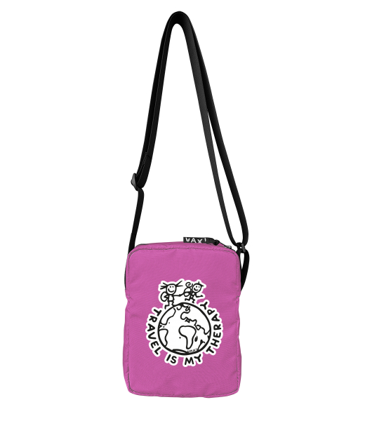 TASKAPA shoulder bag with design 1240 TRAVEL IS MY THERAPY in color INDIAN LILA