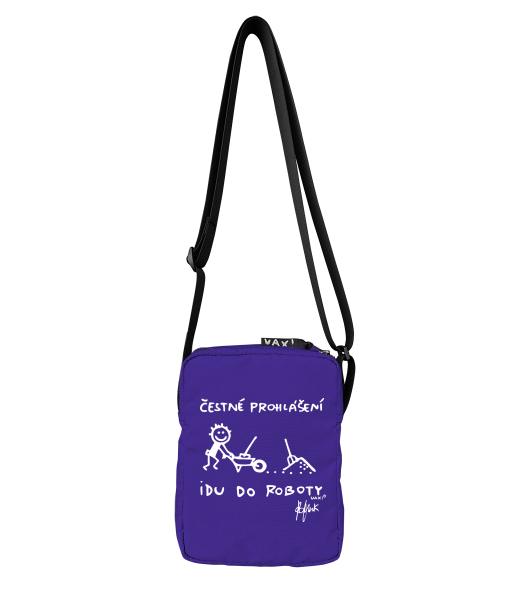 TASKAPA shoulder bag with design 1303 ČESTNÉ PROHLÁŠENÍ IDU DO ROBOTY in color VIOLET