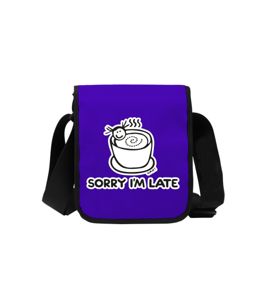 Uax TASPRA MINI bag with printing with design 1087 SORRY IM LATE in color VIOLET