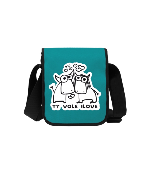 Uax TASPRA MINI bag with printing with design 1089 TY VOLE I LOVE in color TURQUOISE