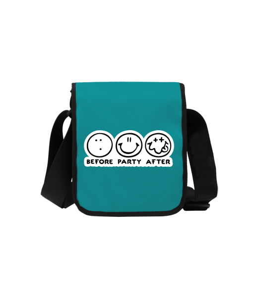 Uax TASPRA MINI bag with printing with design 1120 BEFORE PARTY AFTER in color TURQUOISE