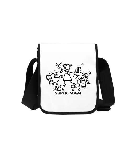 Uax TASPRA MINI bag with printing with design 1126 SUPER MAM in color WHITE
