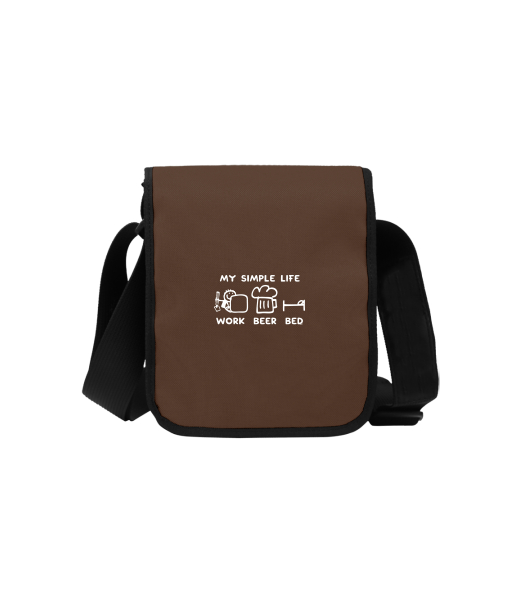 Uax TASPRA MINI bag with printing with design 1211 MY SIMPLE LIFE WORK BEER BED in color BROWN SUGAR