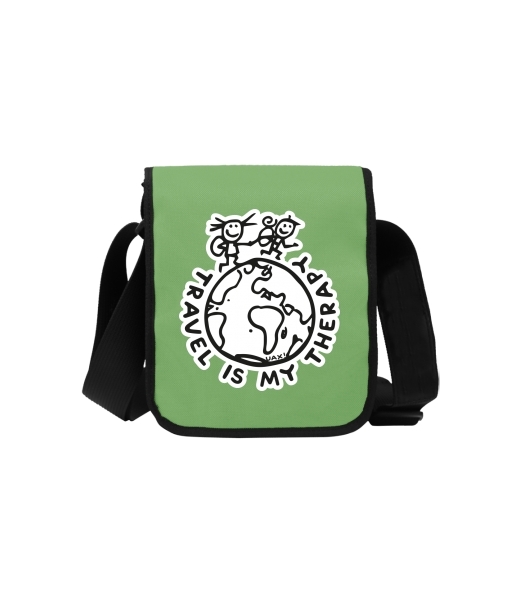 Uax TASPRA MINI bag with printing with design 1240 TRAVEL IS MY THERAPY in color BRIGHT GREEN