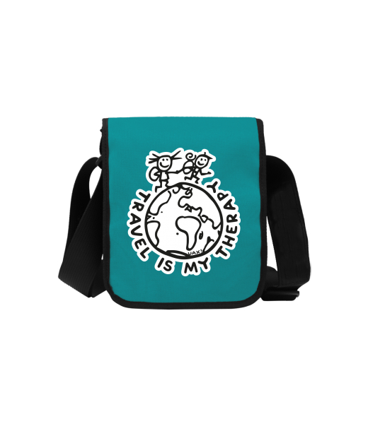 Uax TASPRA MINI bag with printing with design 1240 TRAVEL IS MY THERAPY in color TURQUOISE