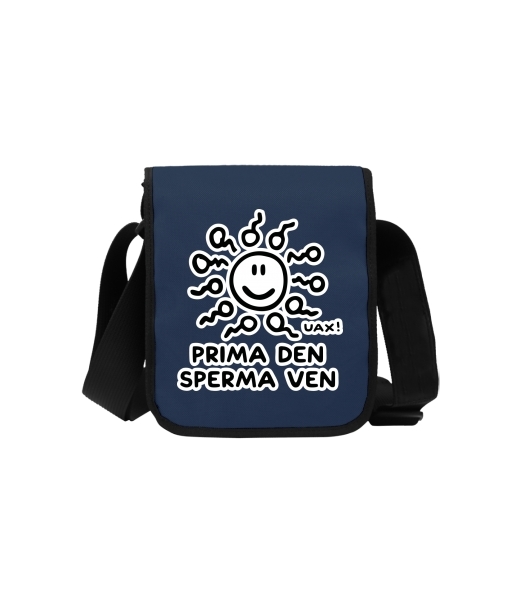 Uax TASPRA MINI bag with printing with design 1265 PRIMA DEN SPERMA VEN in color MIDNIGHT BLUE