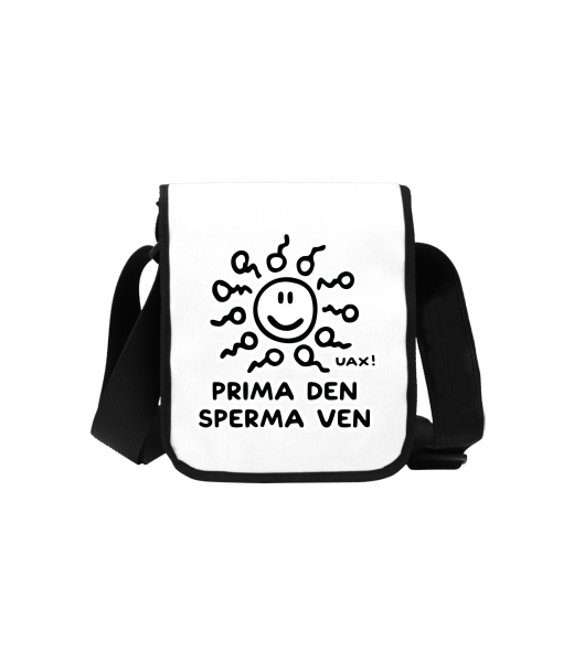 Uax TASPRA MINI bag with printing with design 1265 PRIMA DEN SPERMA VEN in color WHITE