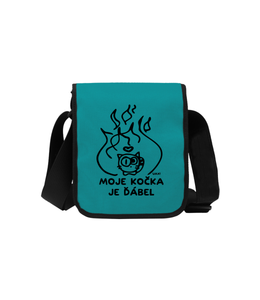 Uax TASPRA MINI bag with printing with design 1326 MOJE KOČKA JE ĎÁBEL in color TURQUOISE