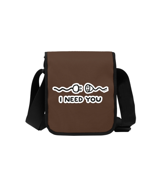 Uax TASPRA MINI bag with printing with design 581 I NEED YOU in color BROWN SUGAR