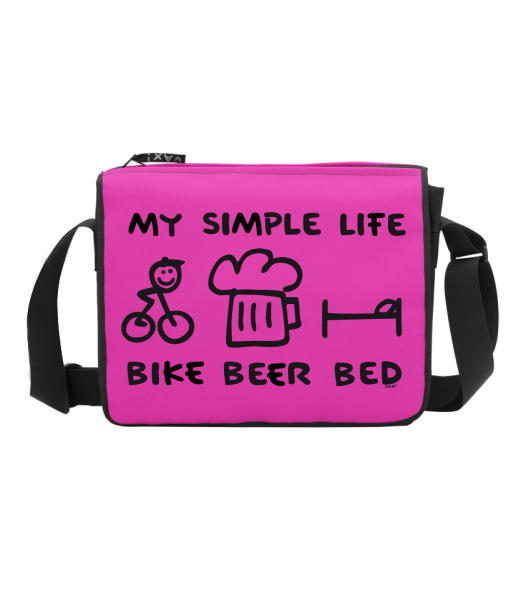 Classic shoulder bag TASPRA, with a choice of original prints UAX with design 1056 BIKE BEER BED in color INDIAN LILA