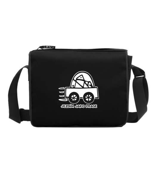Classic shoulder bag TASPRA, with a choice of original prints UAX with design 1072 JEZDÍM JAKO PRASE in color BLACK