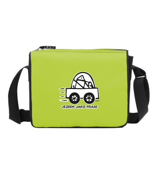 Classic shoulder bag TASPRA, with a choice of original prints UAX with design 1072 JEZDÍM JAKO PRASE in color GREEN LIMET