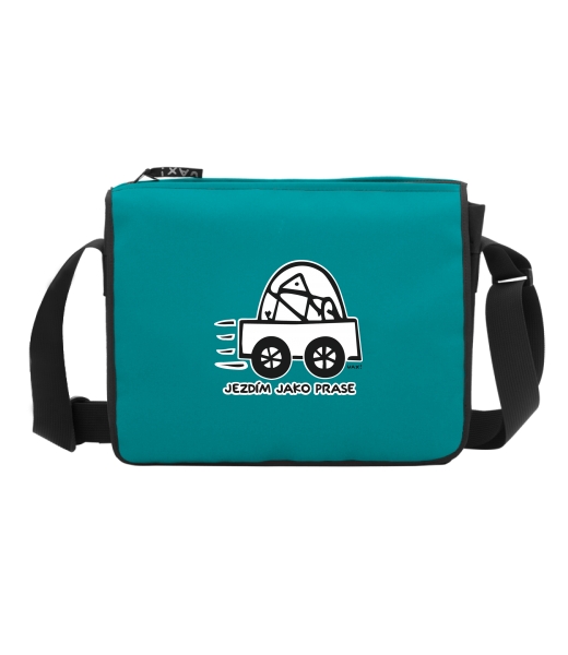 Classic shoulder bag TASPRA, with a choice of original prints UAX with design 1072 JEZDÍM JAKO PRASE in color TURQUOISE
