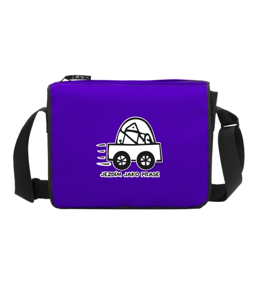 Classic shoulder bag TASPRA, with a choice of original prints UAX with design 1072 JEZDÍM JAKO PRASE in color VIOLET