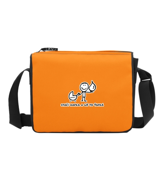 Classic shoulder bag TASPRA, with a choice of original prints UAX with design 1081 STAČÍ KAPKA A UŽ TO ŤAPKÁ in color SIGNAL ORANGE