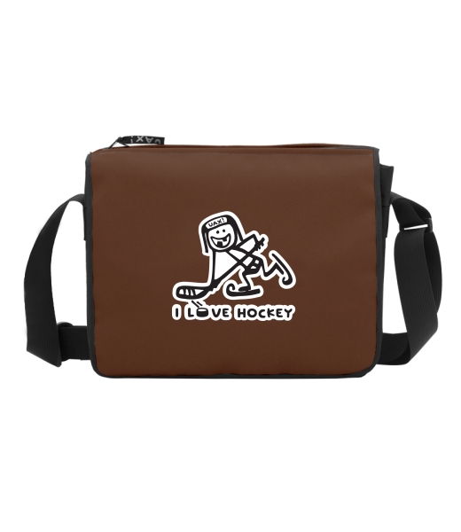 Classic shoulder bag TASPRA, with a choice of original prints UAX with design 1100 I LOVE HOCKEY in color BROWN SUGAR